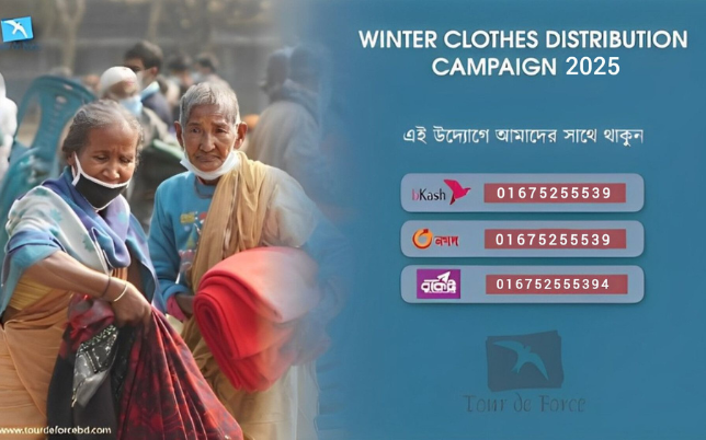 Details: As winter approaches, Tour de Force is organizing its annual শীতবস্ত্র বিতরণ কর্মসূচি to provide warm clothing to underprivileged communities. Our students will work together to collect, organize, and distribute winter essentials, ensuring that vulnerable families receive comfort and care during the cold season.