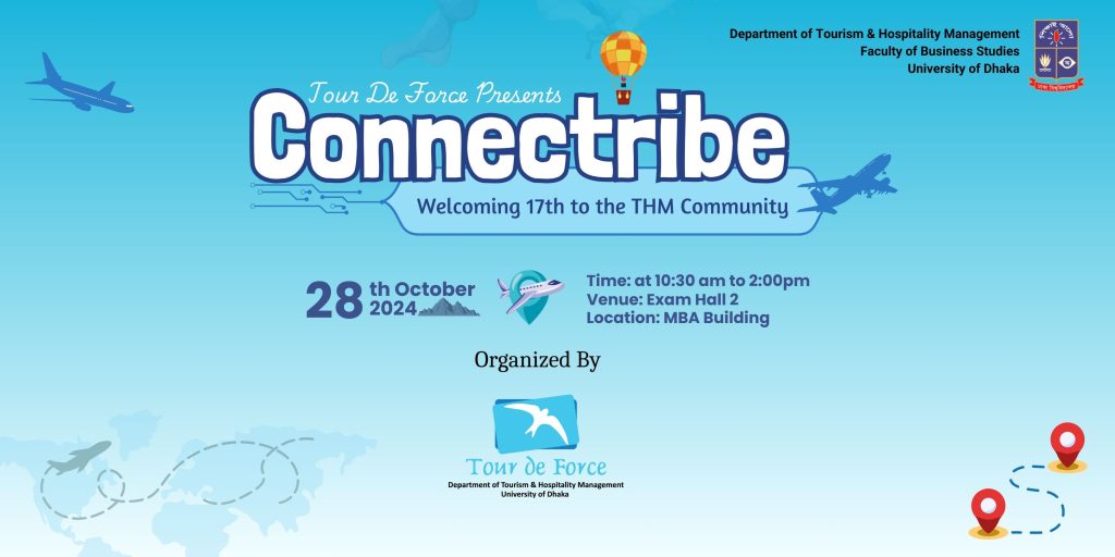 Tour de Force invites you to Connectribe, the orientation for the 17th Batch of the Department of Tourism and Hospitality Management (THM), University of Dhaka. This is your chance to step into the THM community and begin an exciting new chapter!